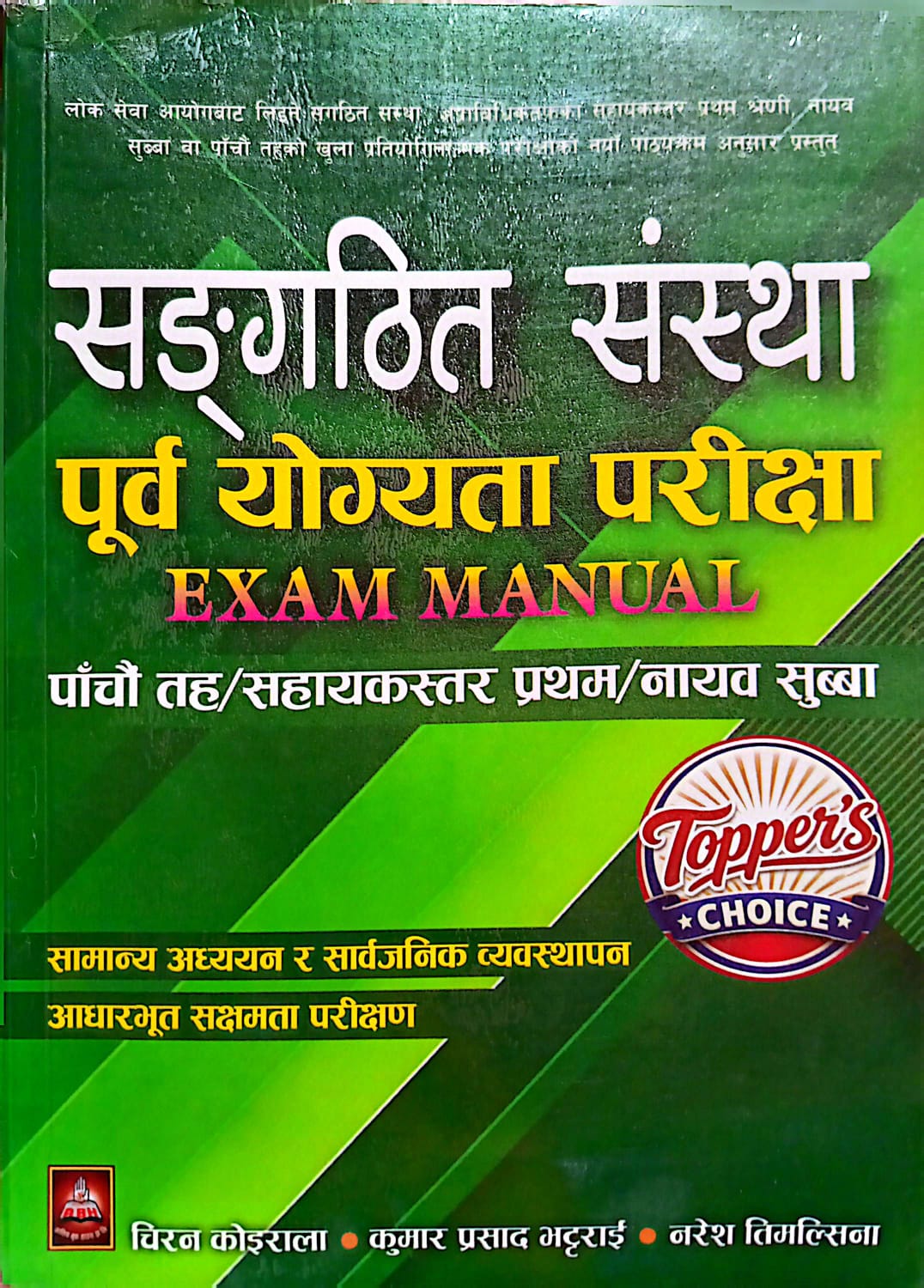 सङ्गठित संस्था पूर्व योग्यता परीक्षा EXAM MANUAL पाँचौ तह/सहायकस्तर प्रथम/नायव सुब्बा | चिरन कोइराला | कुमार प्रसाद भट्टराई | नरेश तिमल्सिना