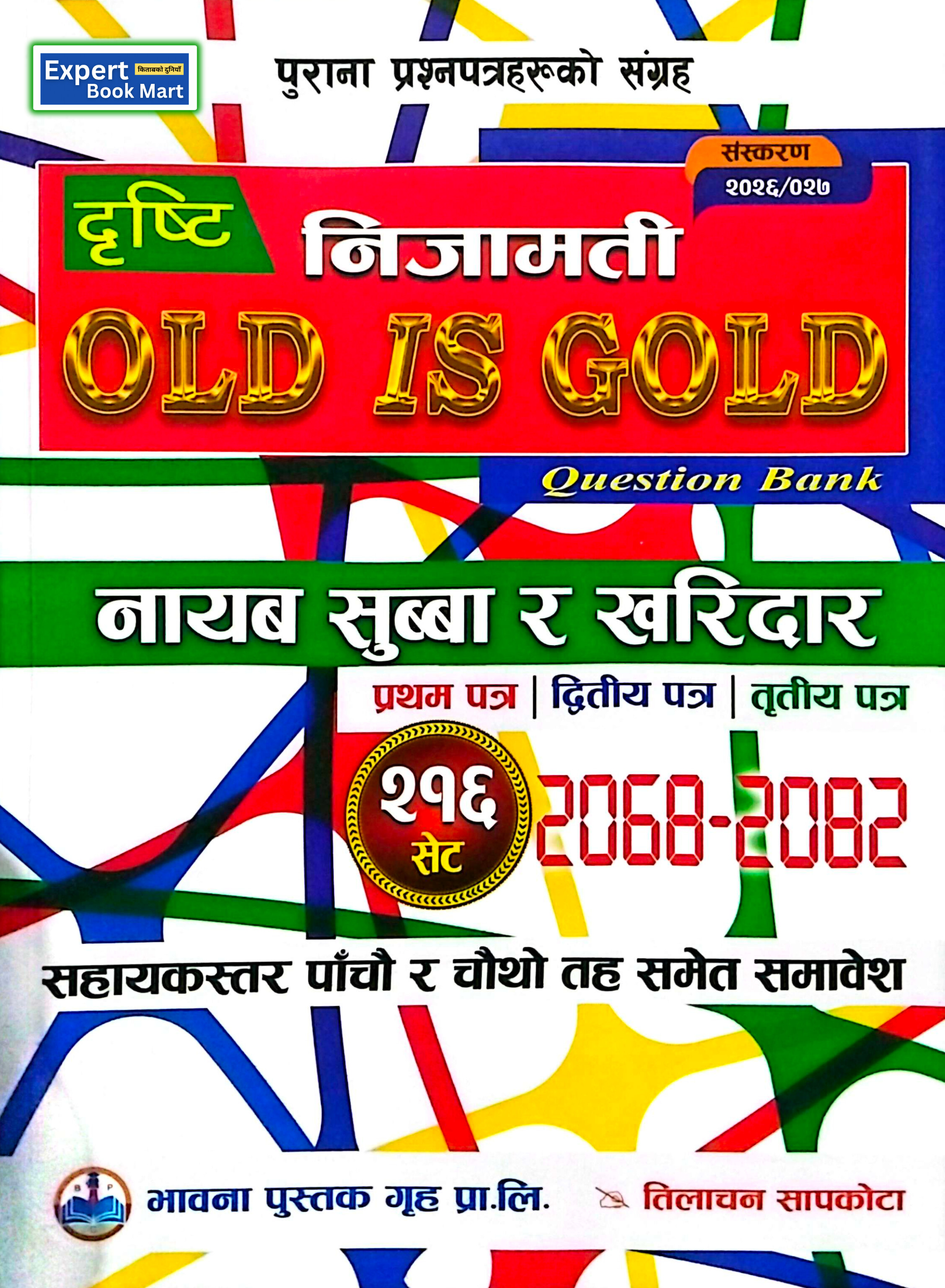 दृष्टि निजामती OLD IS GOLD | नायब सुब्बा र खरिदार प्रथम, द्वितीय तथा तृतीय पत्र | २१६ सेट | (२०६८-२०८२) | सहायकस्तर पाँचौ र चौथो तह समेत समावेश | भावना पुस्तक गृह | तिलाचन सापकोटा (पुराना प्रश्नपत्रहरूको संग्रह)