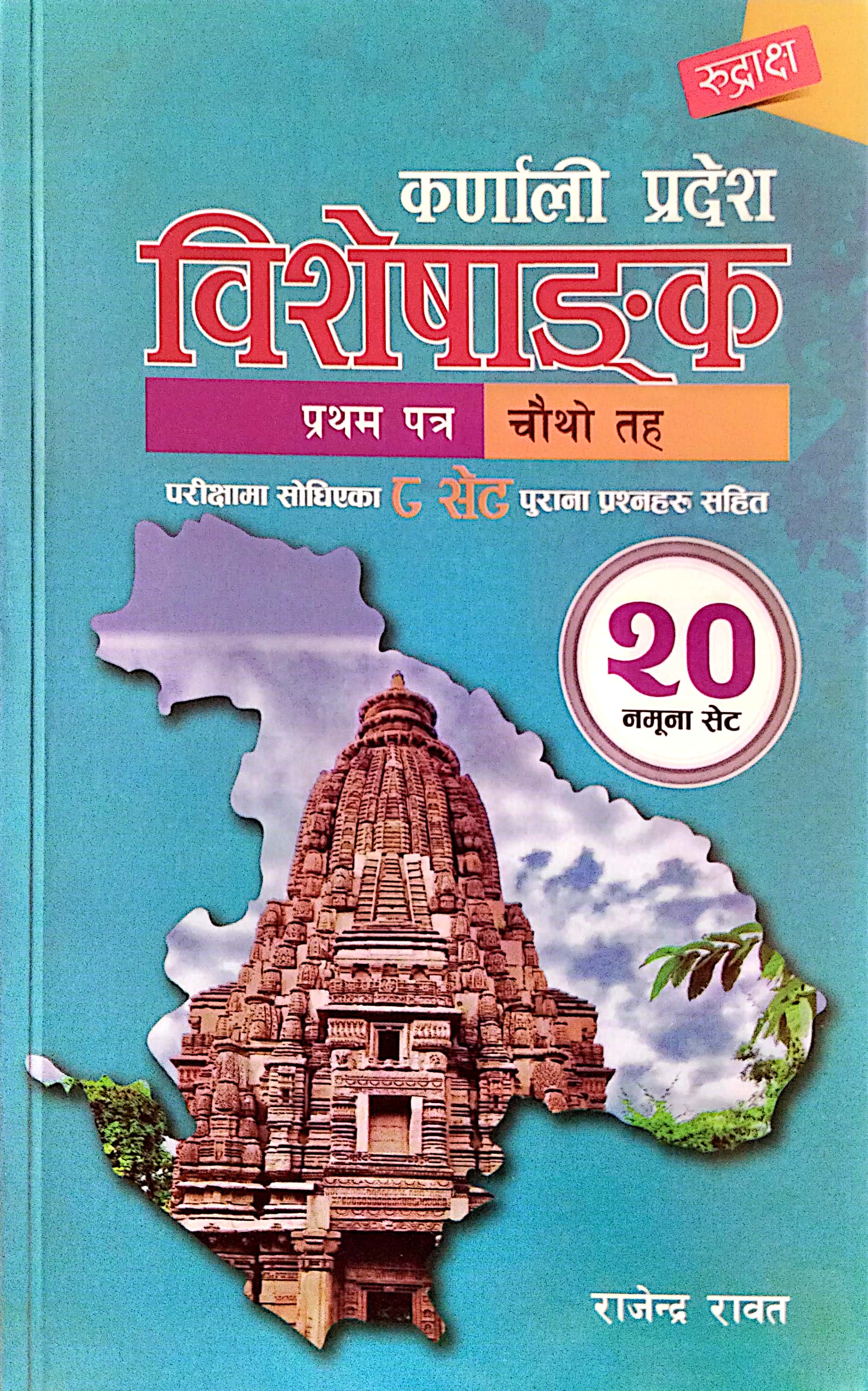 कर्णाली प्रदेश विशेषाङक | चौथो तह | प्रथम पत्र | २० नमूना सेट | बिगत परीक्षामा सोधिएका ८ सेट पुराना प्रश्नहरू सहित | राजेन्द्र रावत | रुद्राक्ष