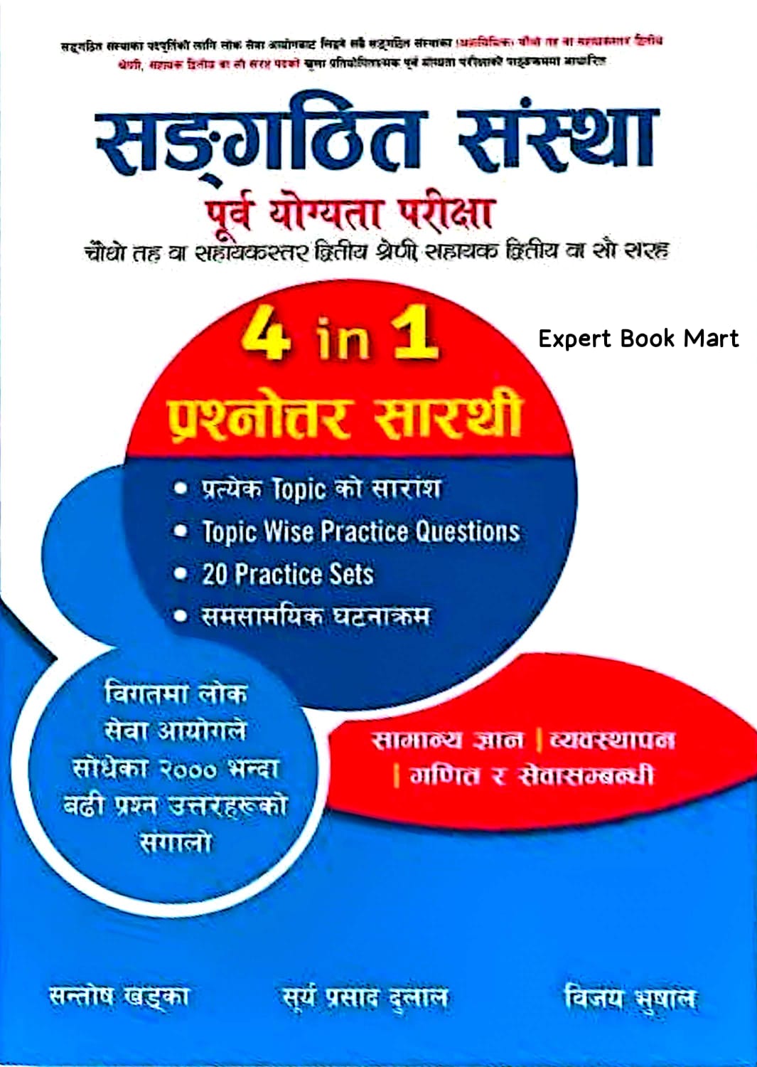 सङ्गठित संस्था पूर्व योग्यता परीक्षा चौथो तह वा सहायकस्तर द्वितीय श्रेणी सहायक द्वितीय वा सो सरह | 4 in 1 प्रश्नोत्तर सारथी | सन्तोष खड्का | सूर्य प्रसाद दुलाल | विजय भुषाल